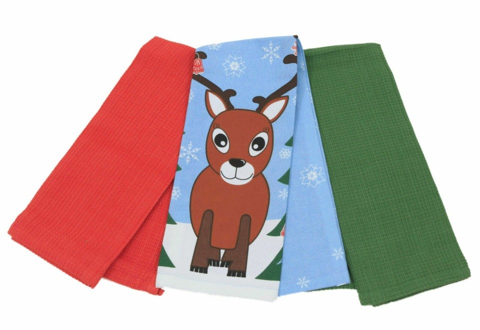 Bundle Reindeer Table Runner Placemats Towels Set 8 Pieces