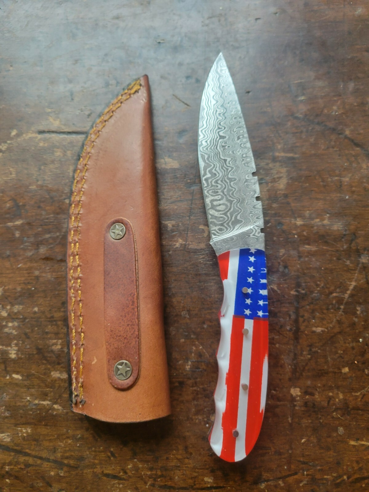 JW Steelcrafts Flag Handle Damascus Skinner and 34 similar items