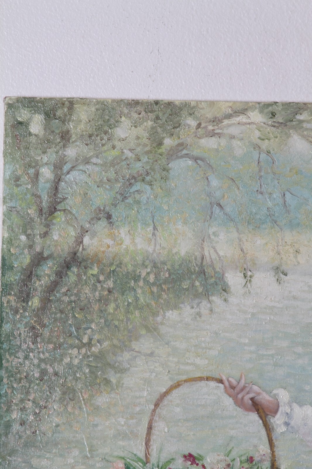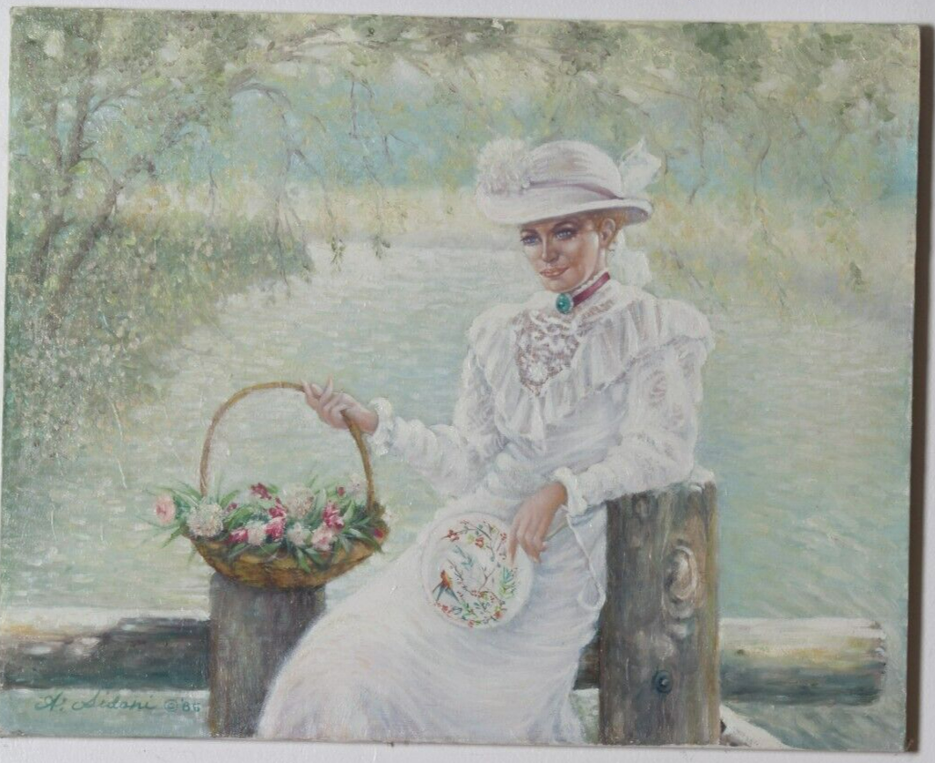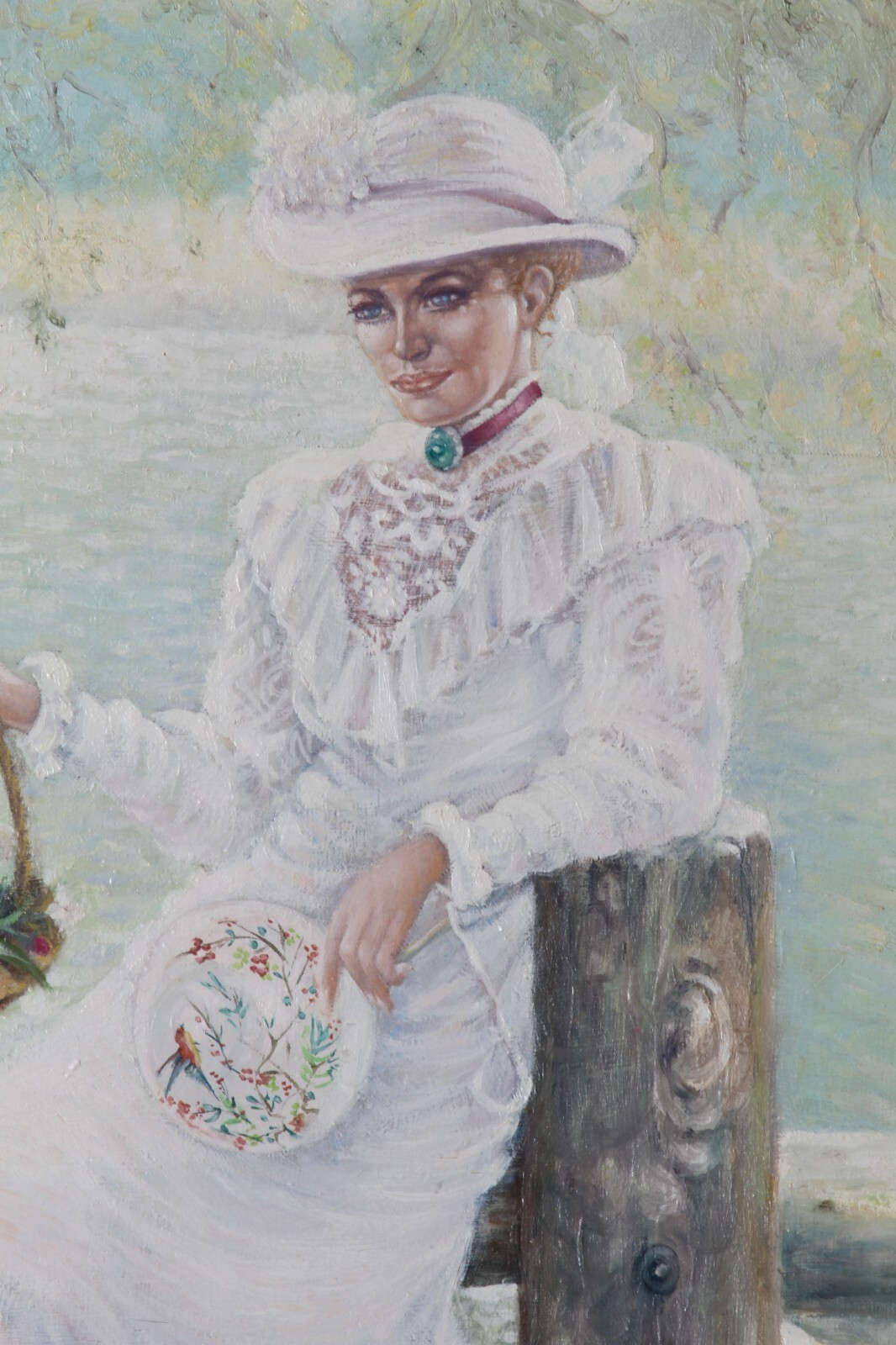 "A Vision in White" (Woman in White Sitting by Water) Oil Painting by Anthony Sidoni