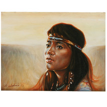 Untitled (Native American Girl w/ Headband) By A. Sidoni Oil Painting on Board