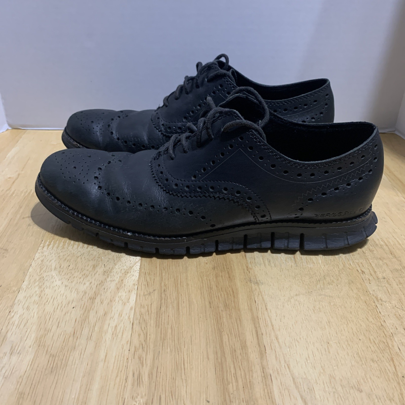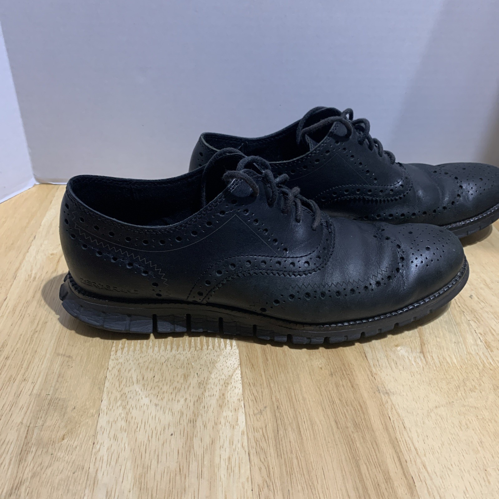 Cole Haan ZEROGRAND Wingtip Oxford Shoes Size 9M C20719 Black/Black Leather