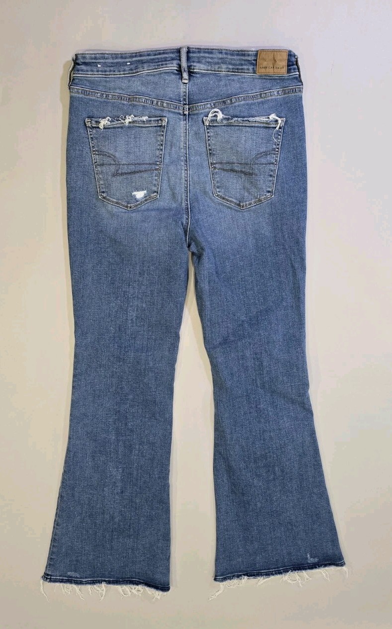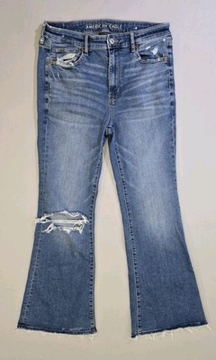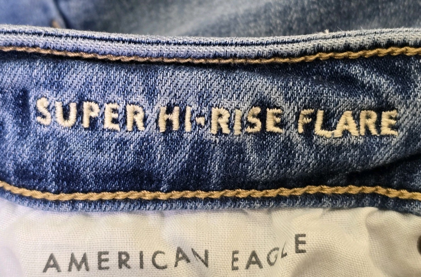 American Eagle Super Stretch Destroyed Super Hi Rise Flare Jeans Sz 8 Reg 29x29