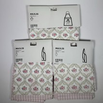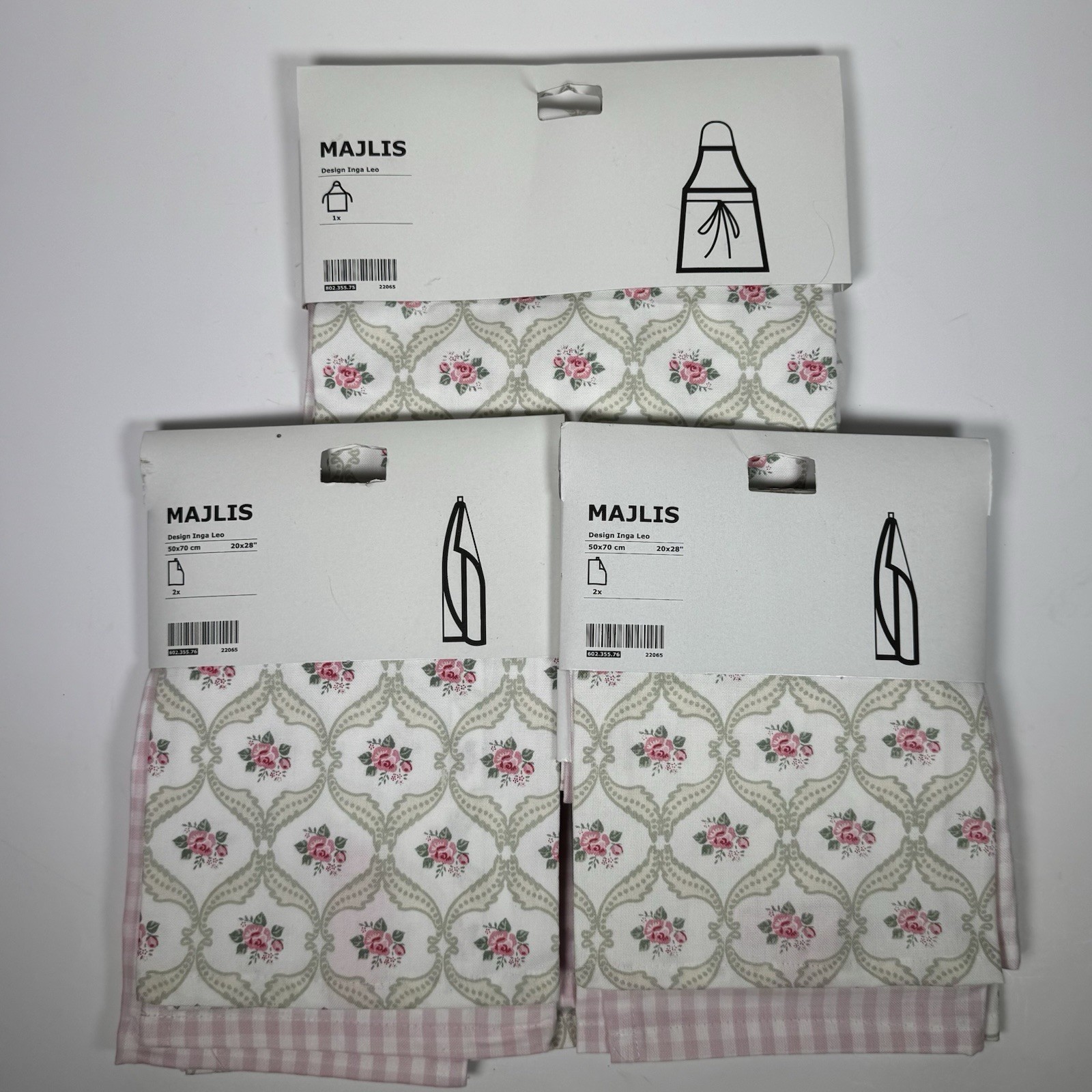 Ikea Majlis Apron & 4 Hand Towels New Set Floral & Pink Gingham