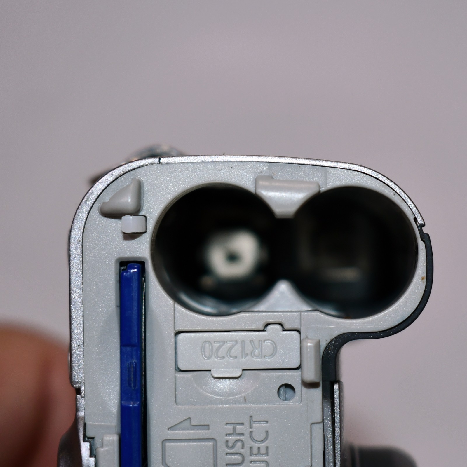 There are some scuffs and scratches on the front of the camera as shown in the photos. Also, the shutter cover does get hung up some times when the camera shuts down but all you have to do if it does it touch it a little and it shuts nicely. Comes with a 1 GB SD card.