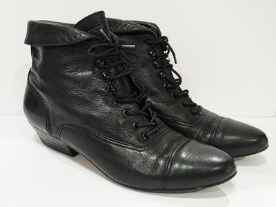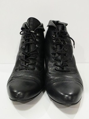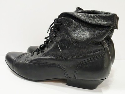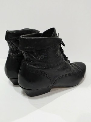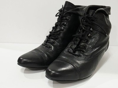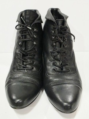 Nicole CARRIE Black Leather Ankle Boot Bootie Heel Lace Up Tie Cap 5.5 M Used