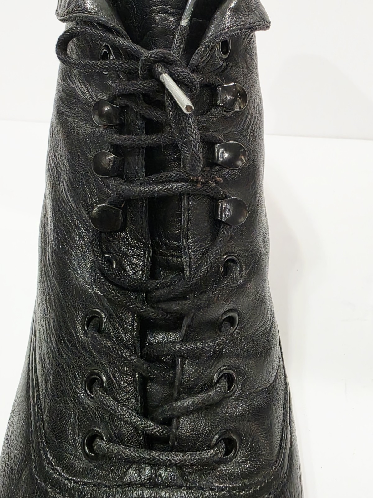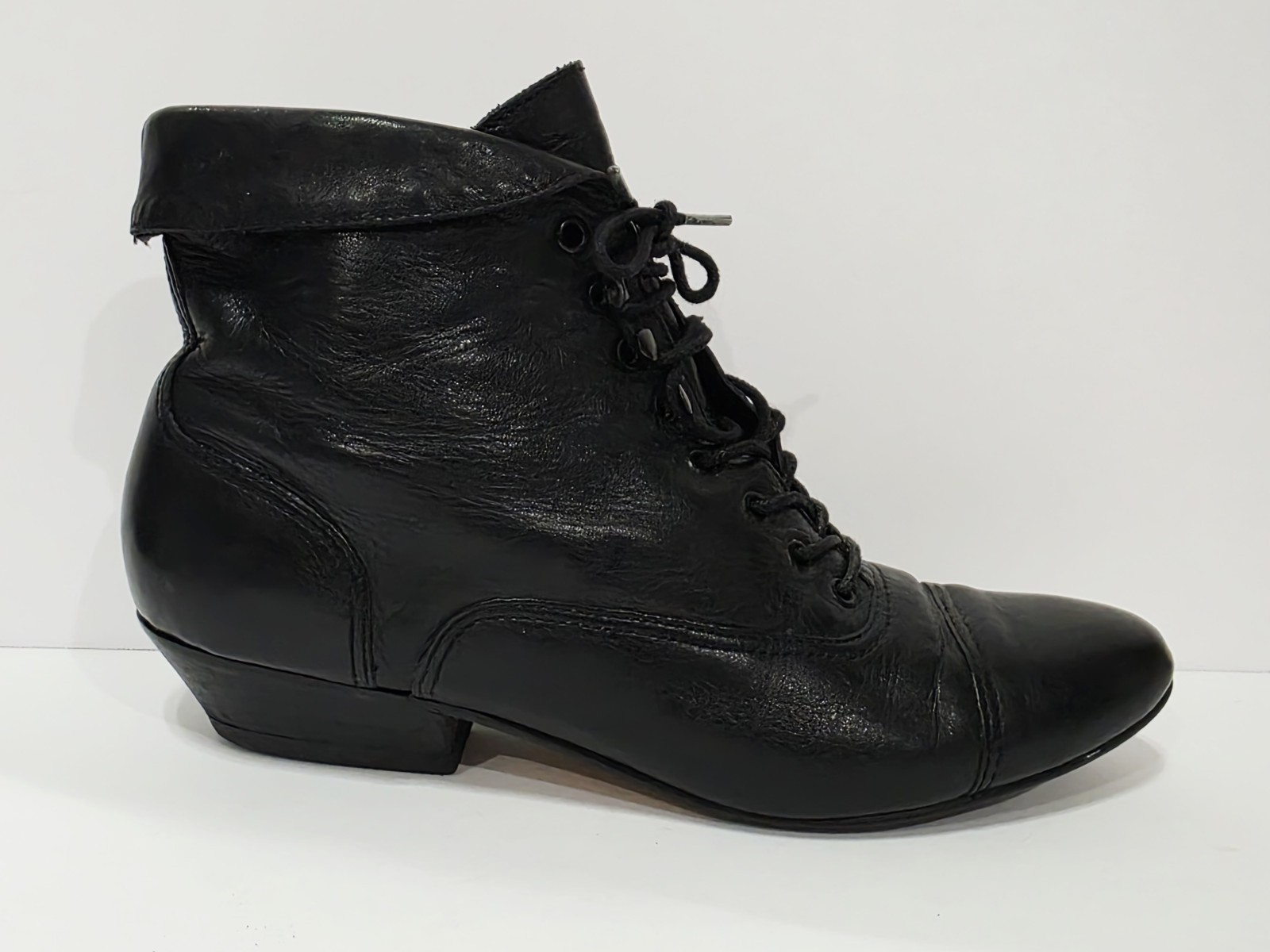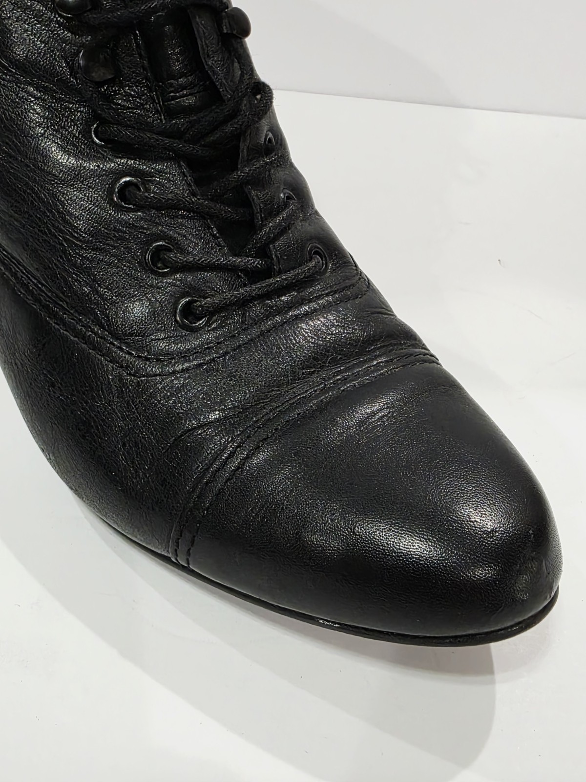 1 Slightly Used No Box By Nicole CARRIE Black Leather Ankle Boot Bootie Heel Lace Up Tie Cap Women 5.5 M Used! (Box #30)