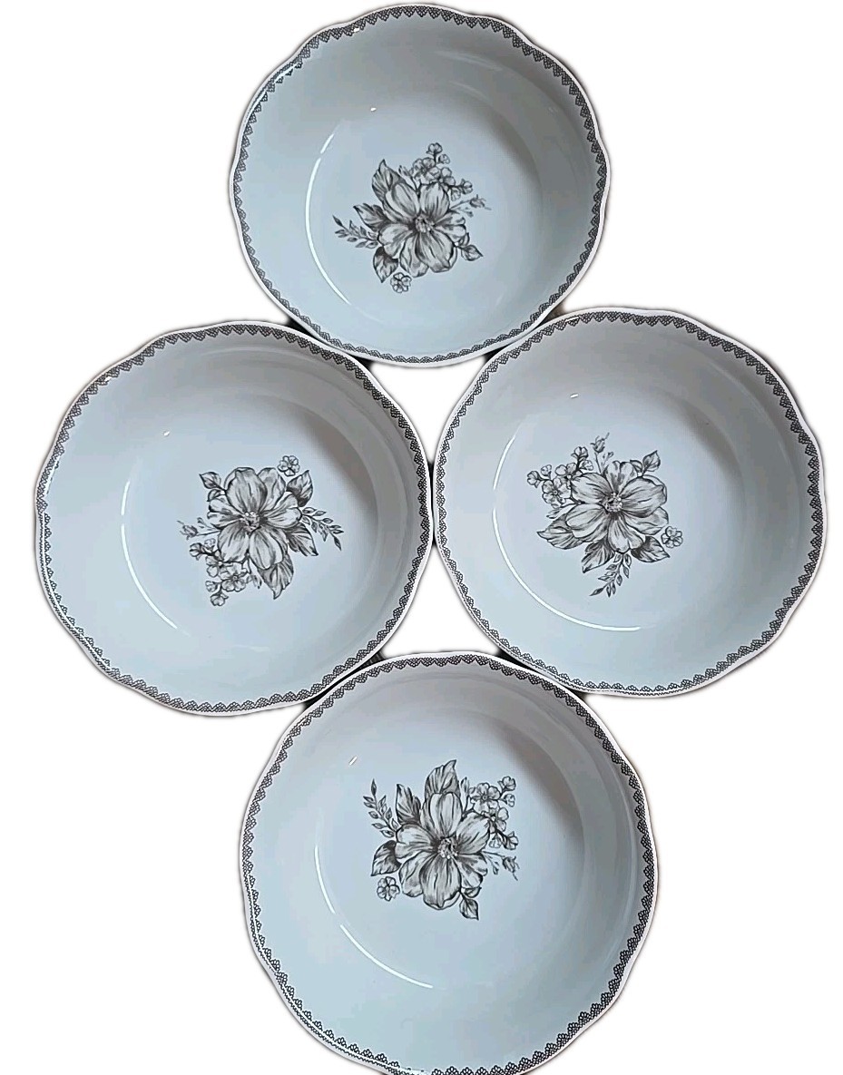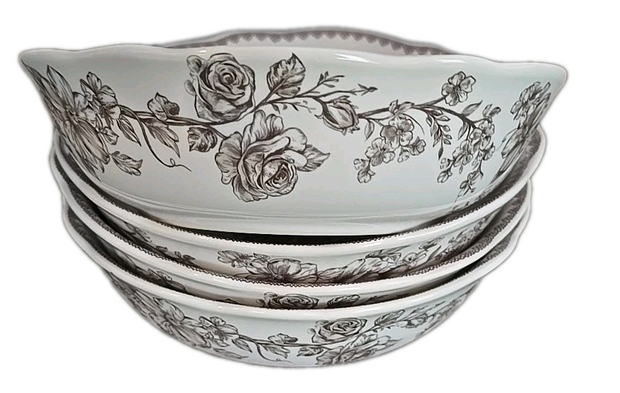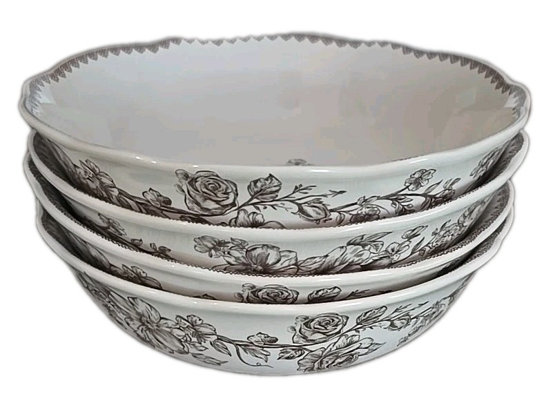 Four (4) Pioneer Woman ~ AGATHA BROWN ~ Scalloped Edge ~ 7.01" Stoneware Bowls