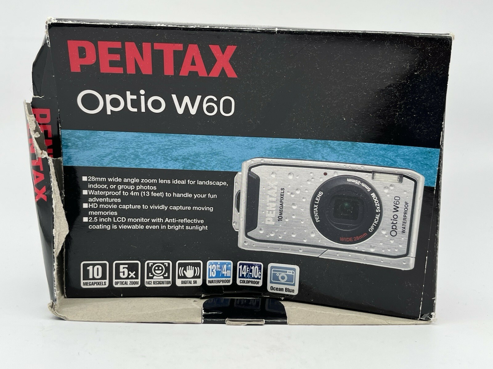 Pentax Optio W60 Waterproof 10MP Digital Camera 5X Wide Angle Optical Zoom w/Bat