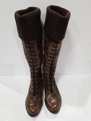 Cole Haan WHITLEY D35367 Brown Leather Knit Boot Knee High Air Zip 6.5 B New