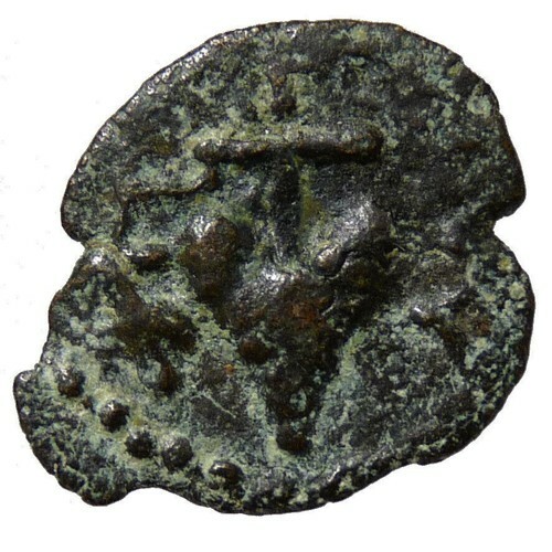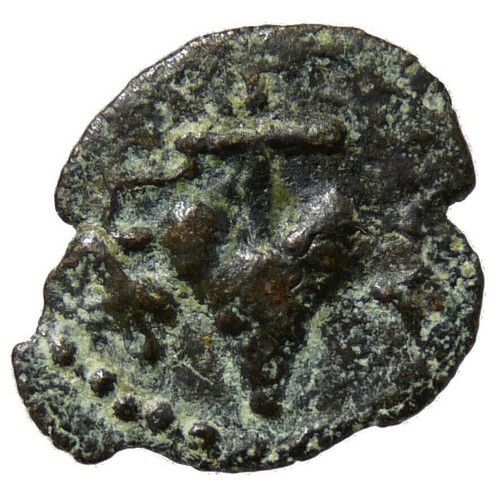 Obverse: HP???? (of Herod in Greek), bunch of grapes and vine leaf on stem.