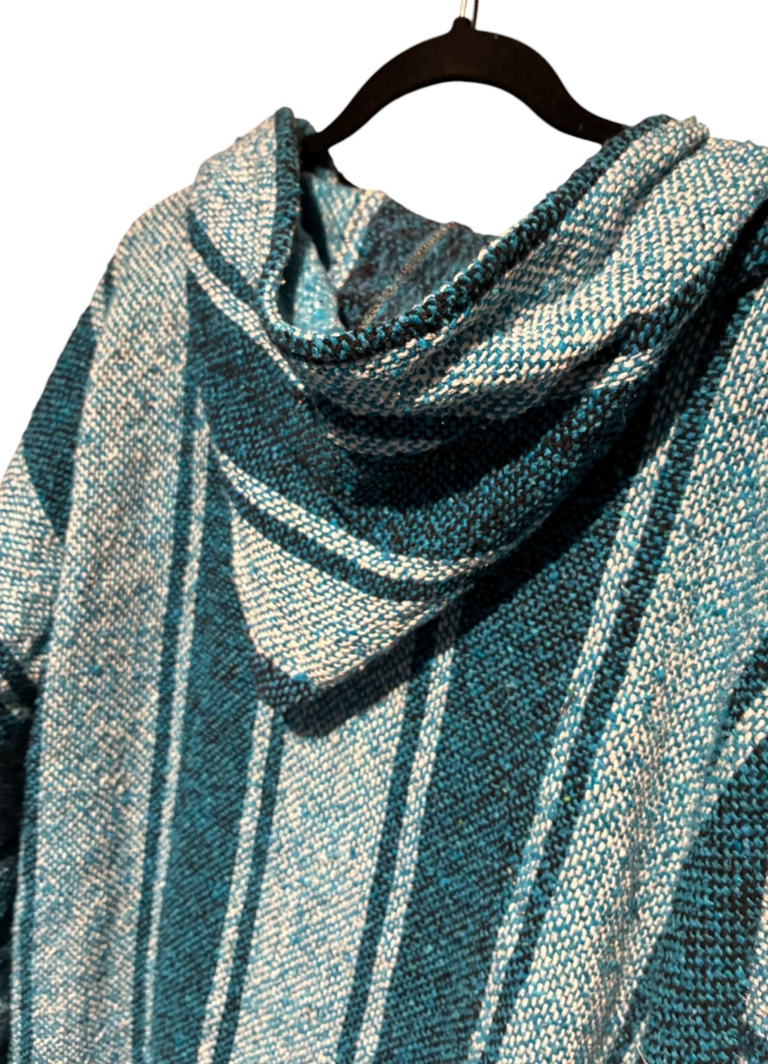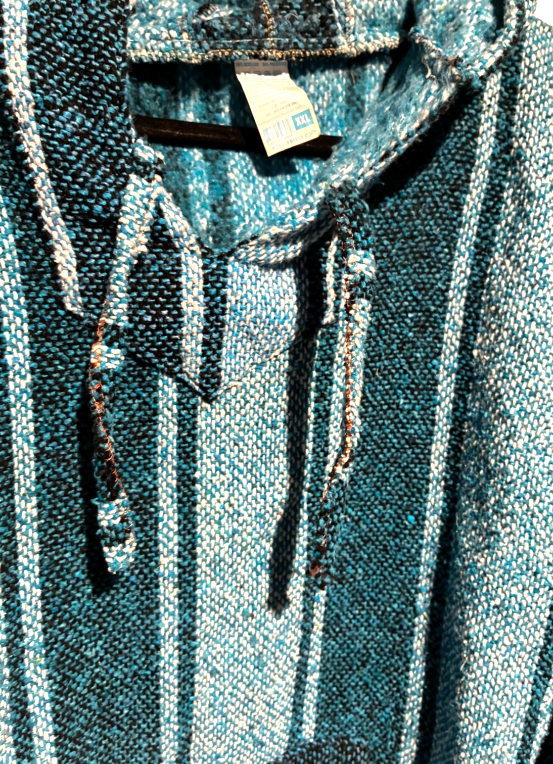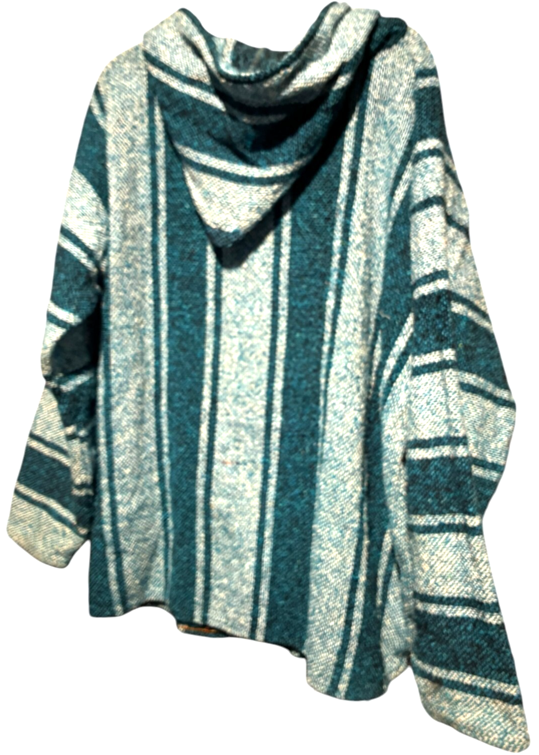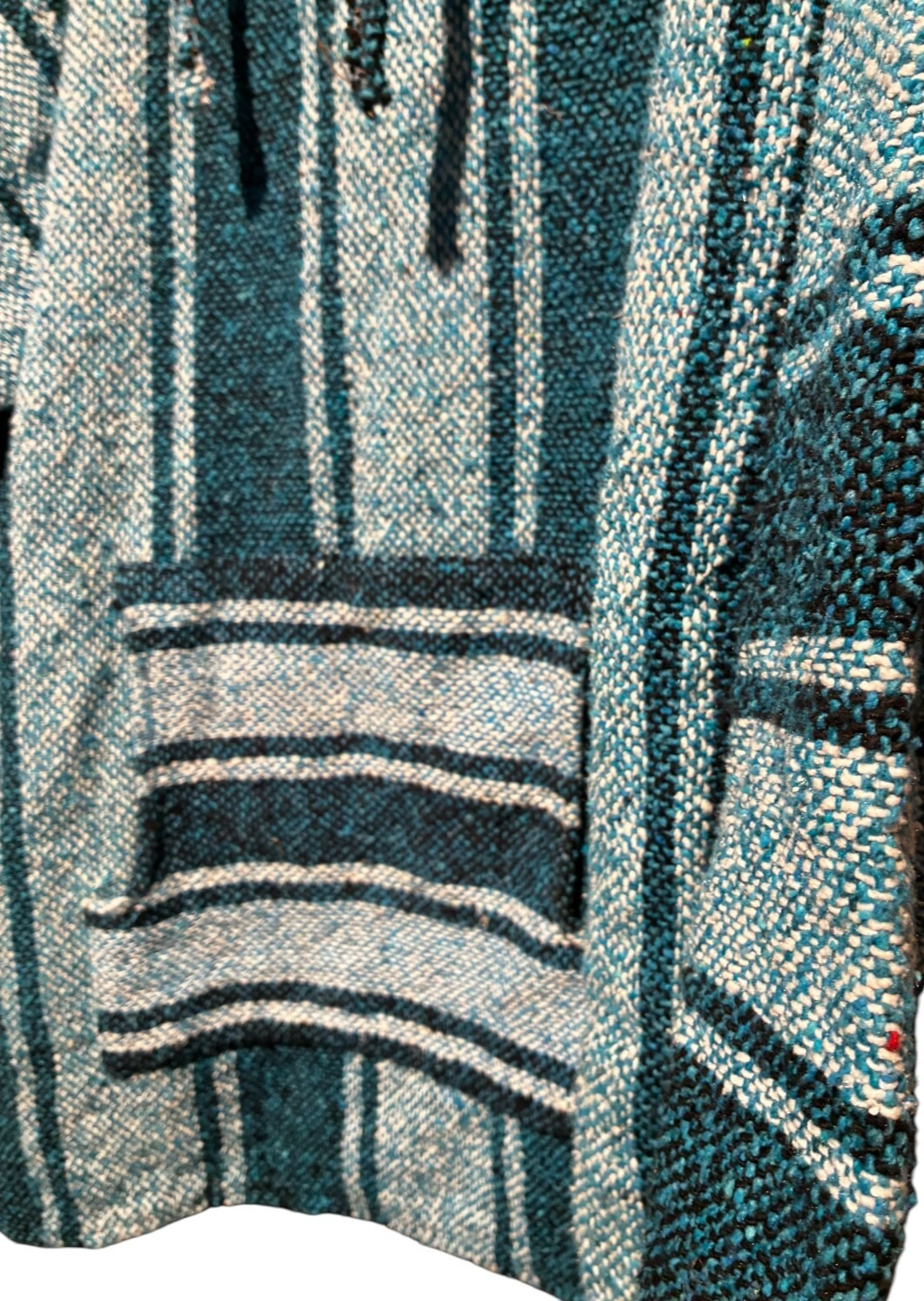 La Malinche Capucha blue mexican pullover hoodie Surf Poncho Sweatshirt size 2XL