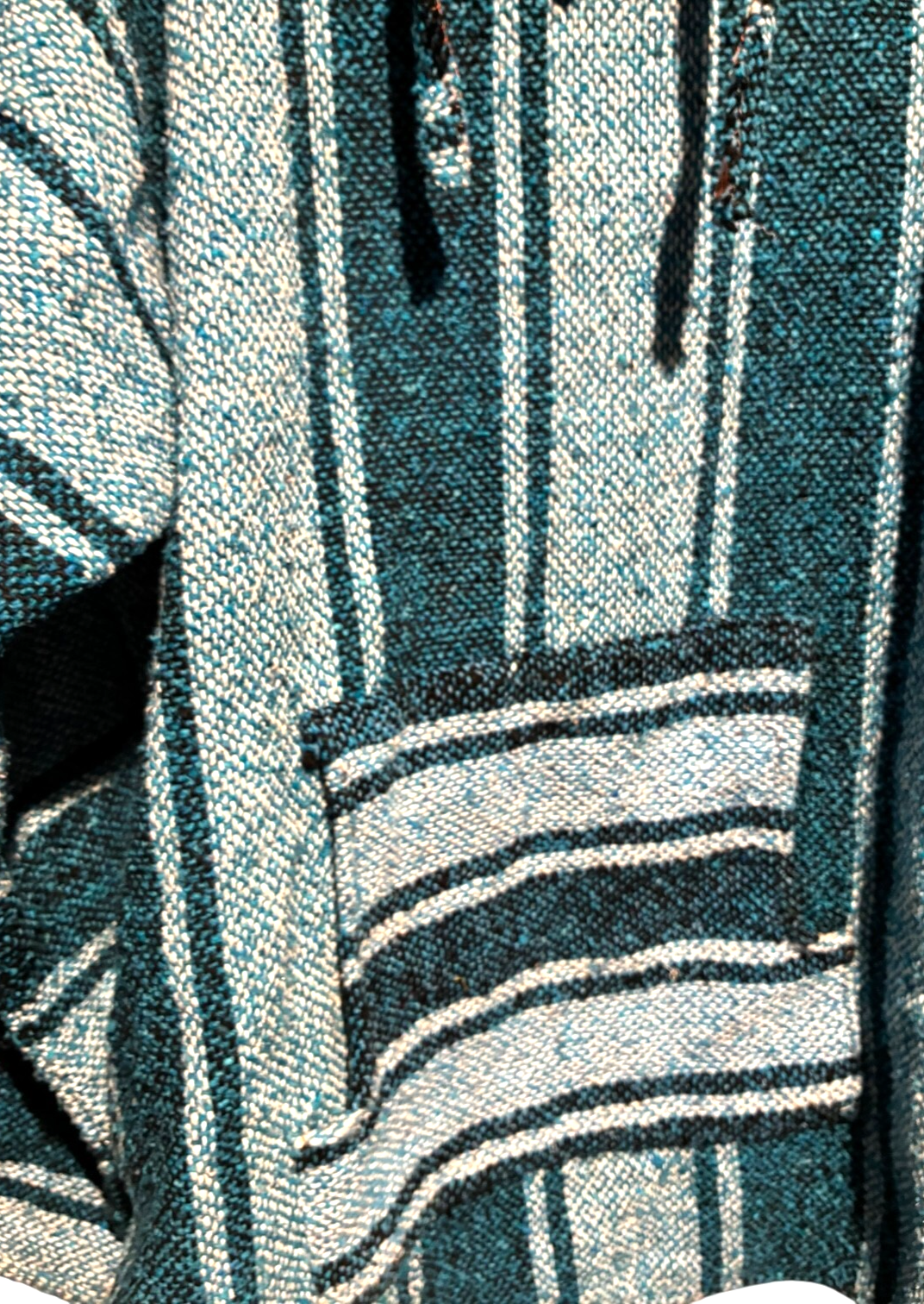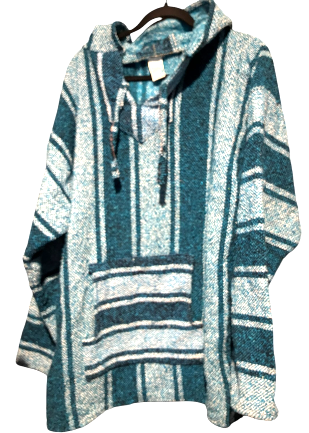 La Malinche Capucha blue mexican pullover hoodie Surf Poncho Sweatshirt size 2XL XXL