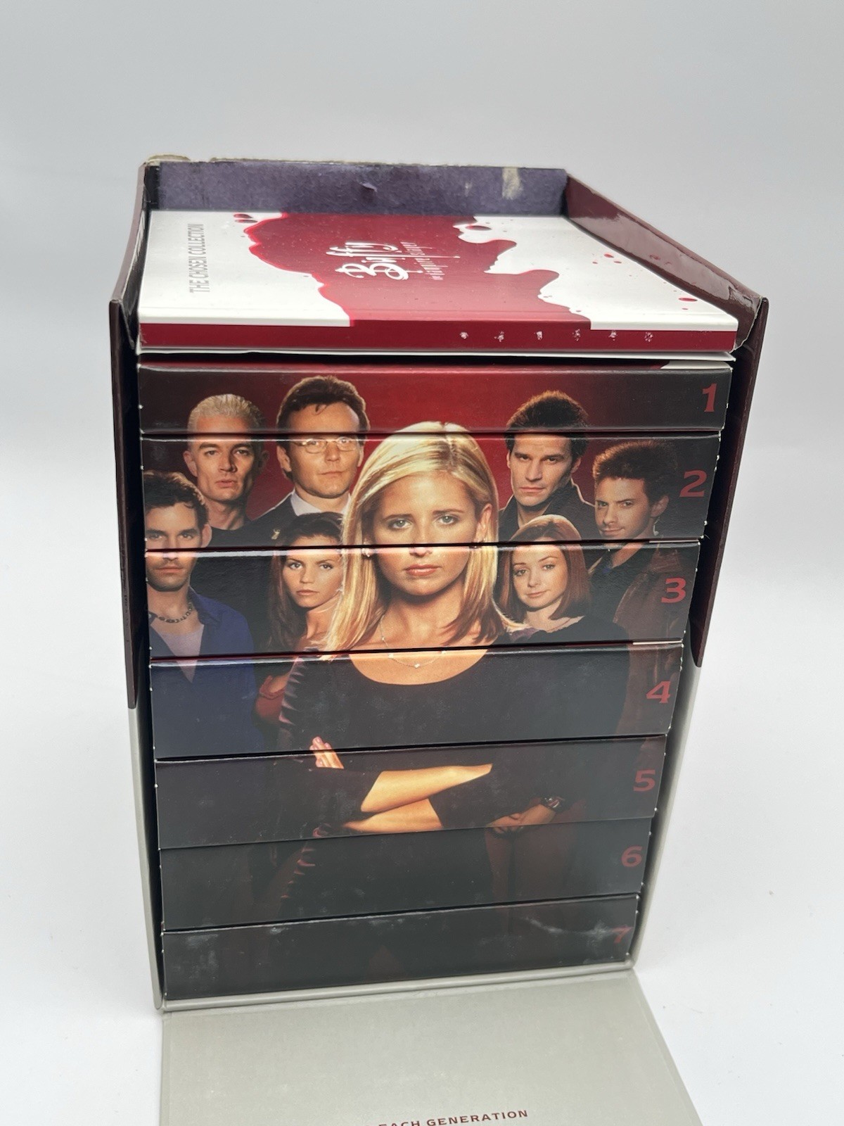 Buffy the Vampire Slayer: Complete Series Chosen Collection 40 DVDs Seasons 1-7. The top of the cd box is missing. The cd?s don?t appear to have any significant flaws on them.