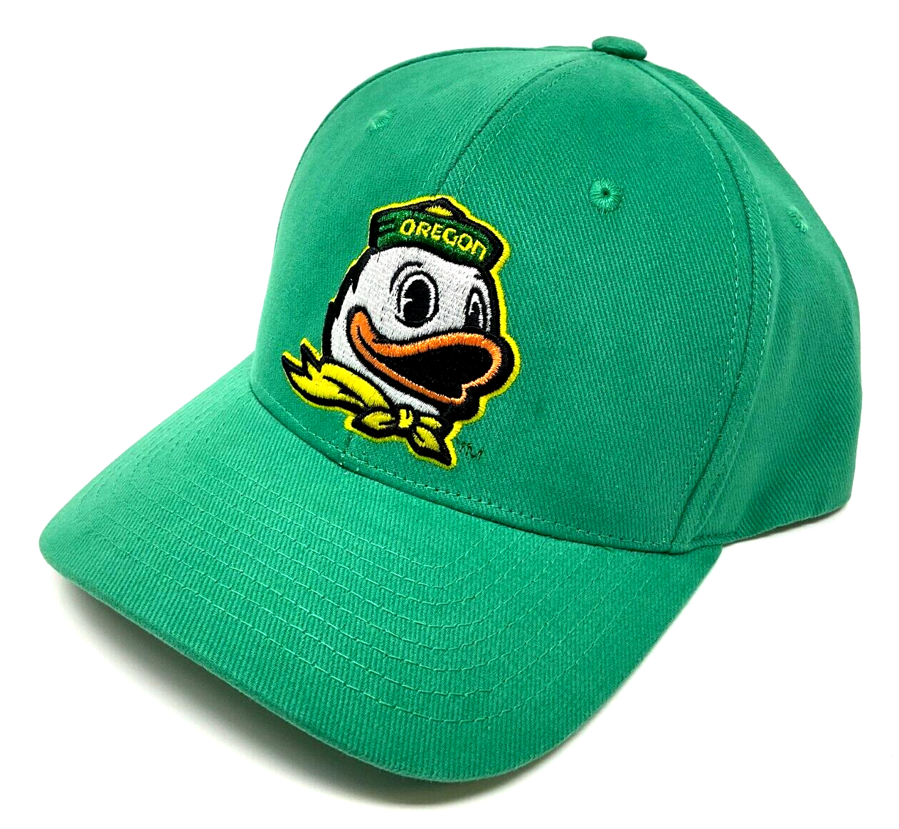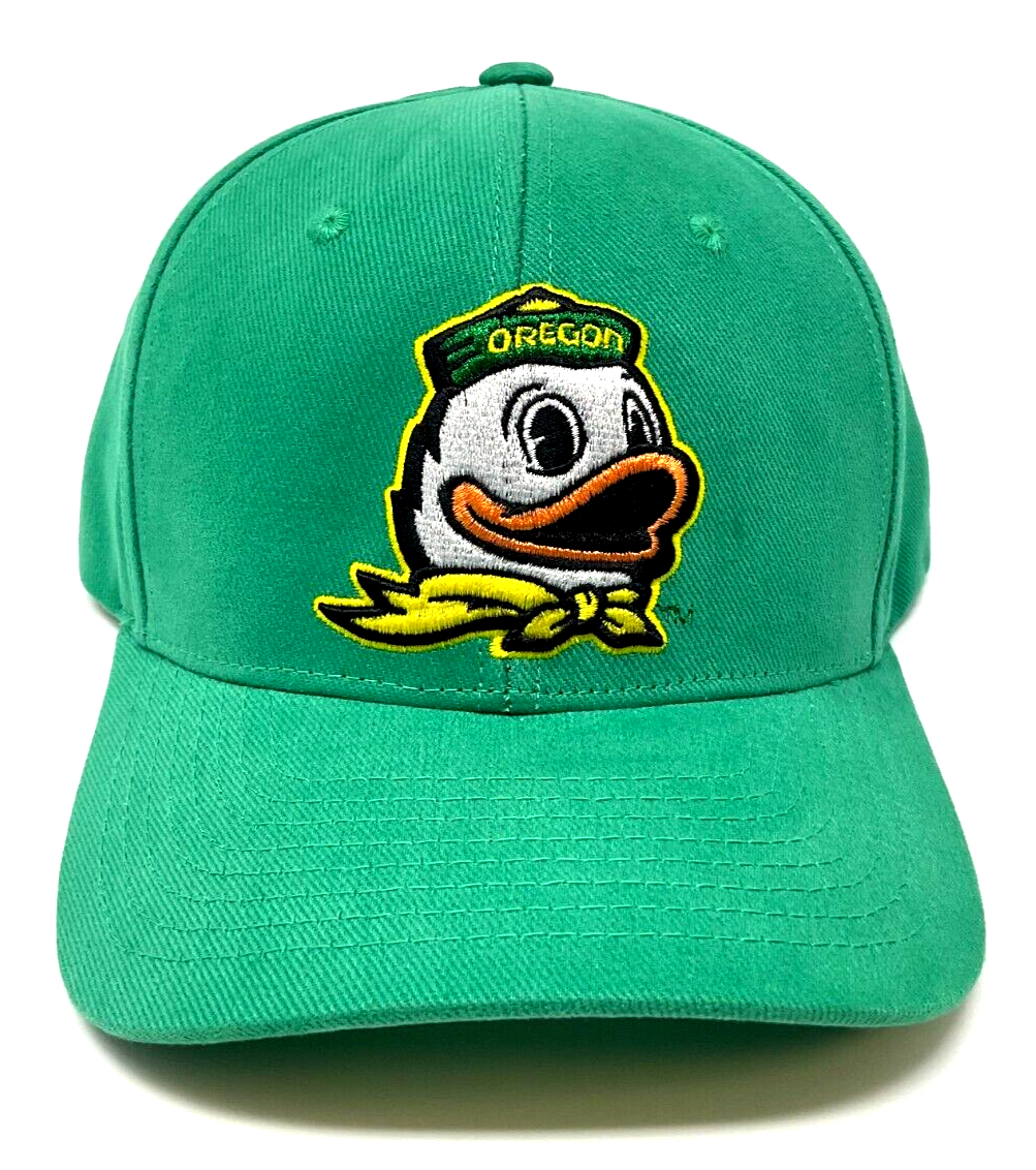 UNIVERSITY OF OREGON DUCKS LOGO MASCOT GREEN ADJUSTABLE CURVED BILL HAT CAP MENS