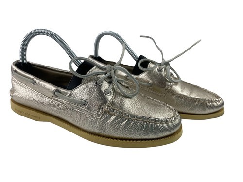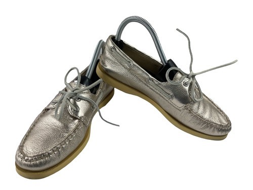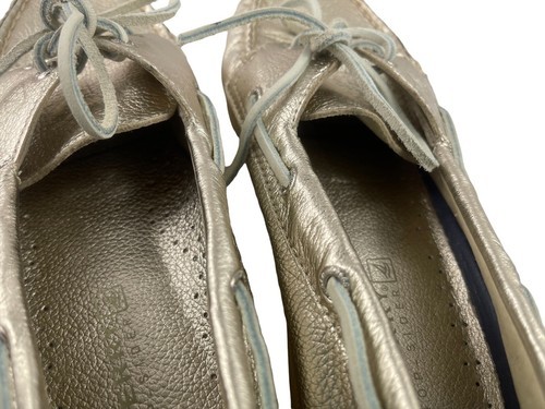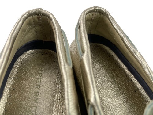 Sperry Top-Sider Boat Shoes Women 7.5M Gold Silver Leather Slipon Comfort Loafer