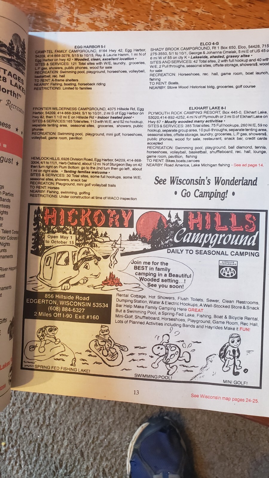 Directory del Campground del Wisconsin Vintage degli anni '80 del 1989