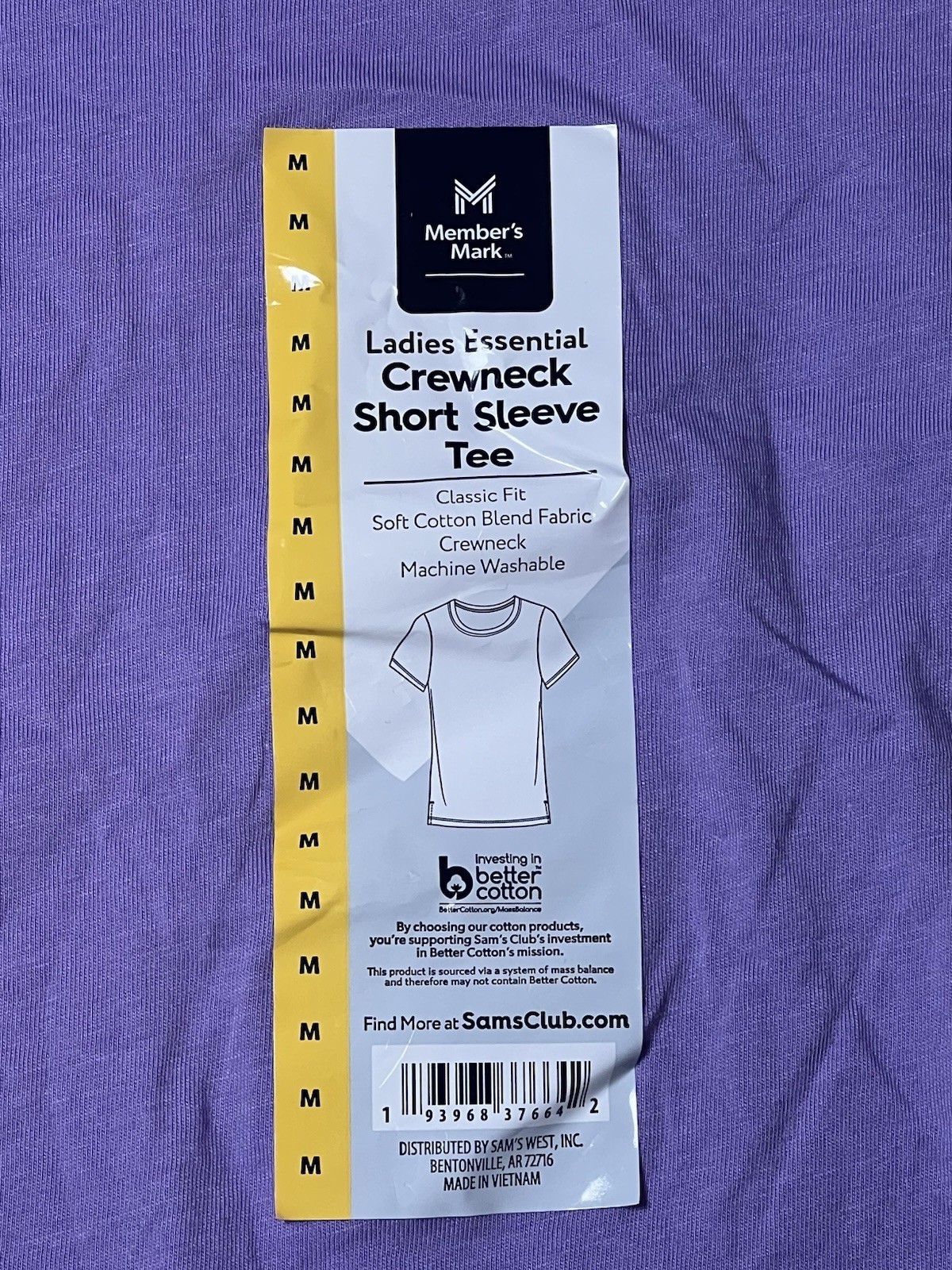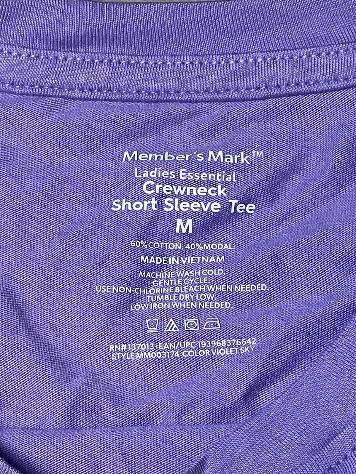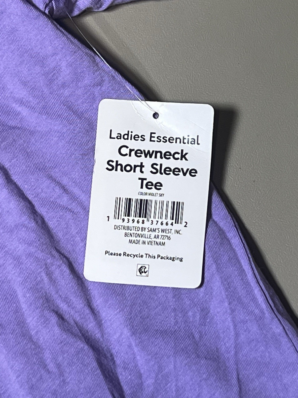Members Mark Ladies Essential Crewneck SS Tee Size M - Violet Sky