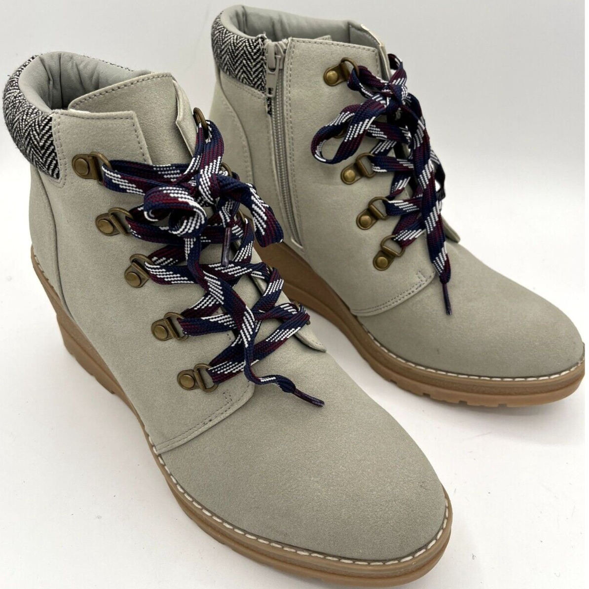 Maurices Claire Gray Knit Collar Lace Up Wedge womens size 11M