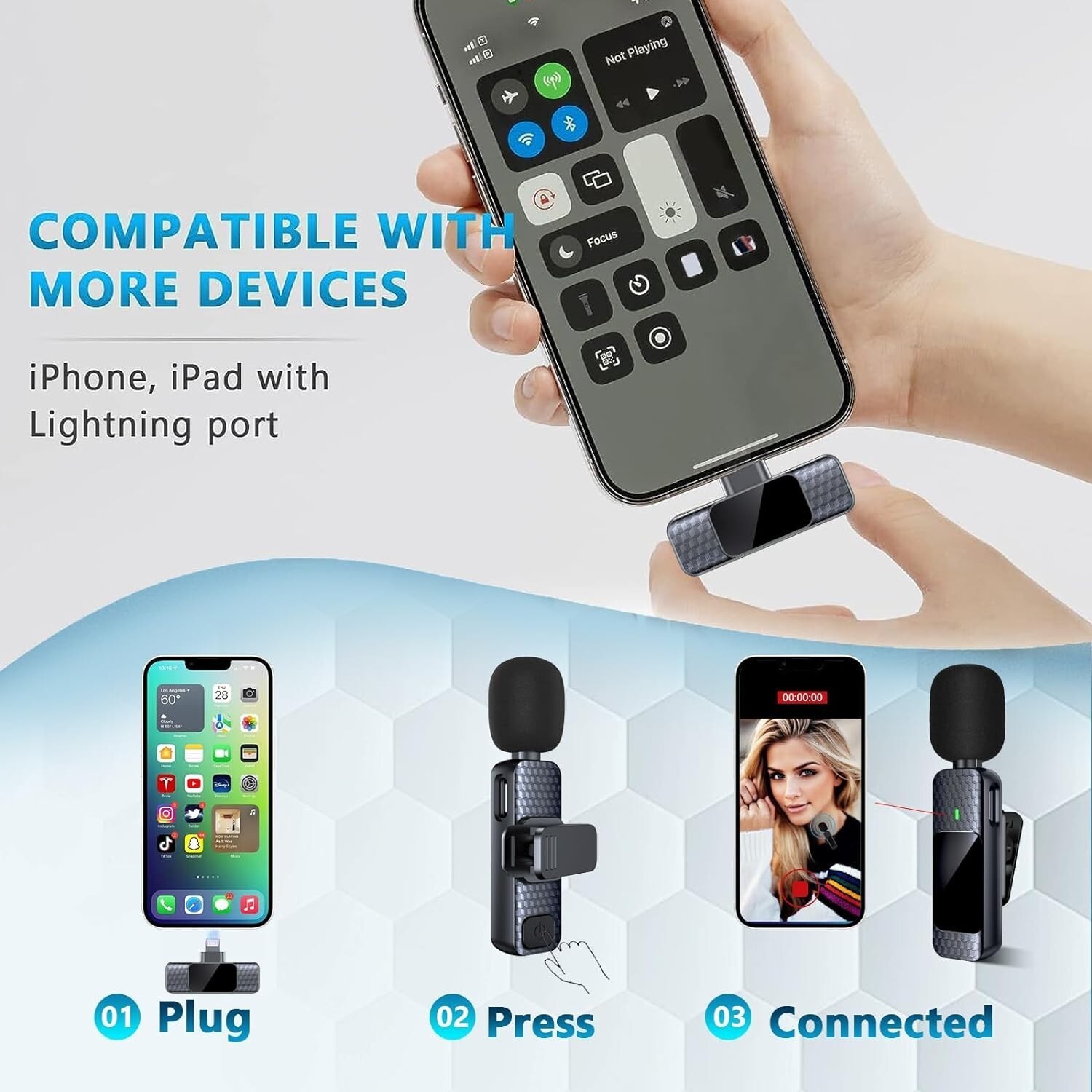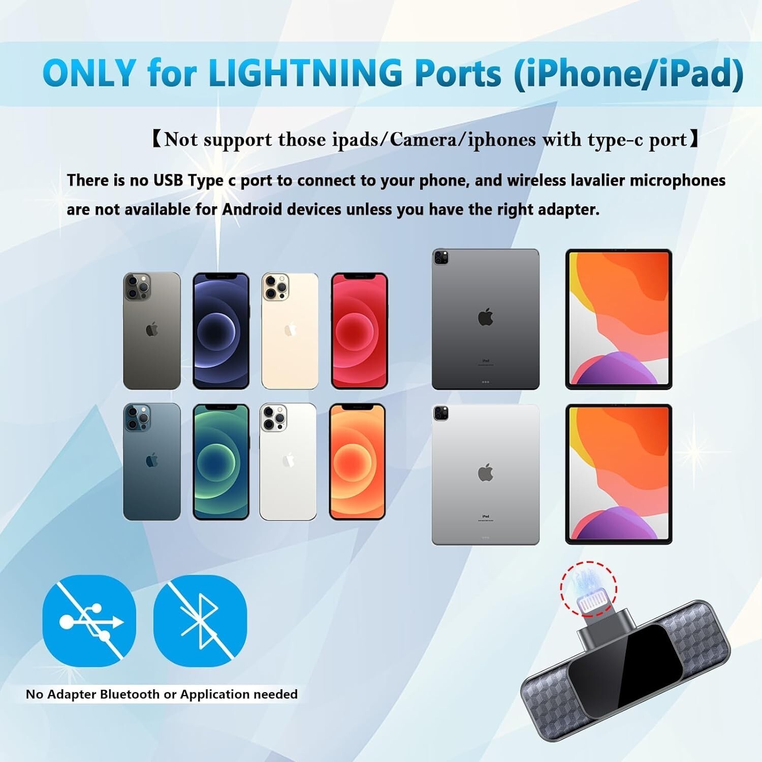 Lightning Ports: The wireless microphone is for iPhone or iPad compatible with iOS system. It can be used on iphones and ipads with