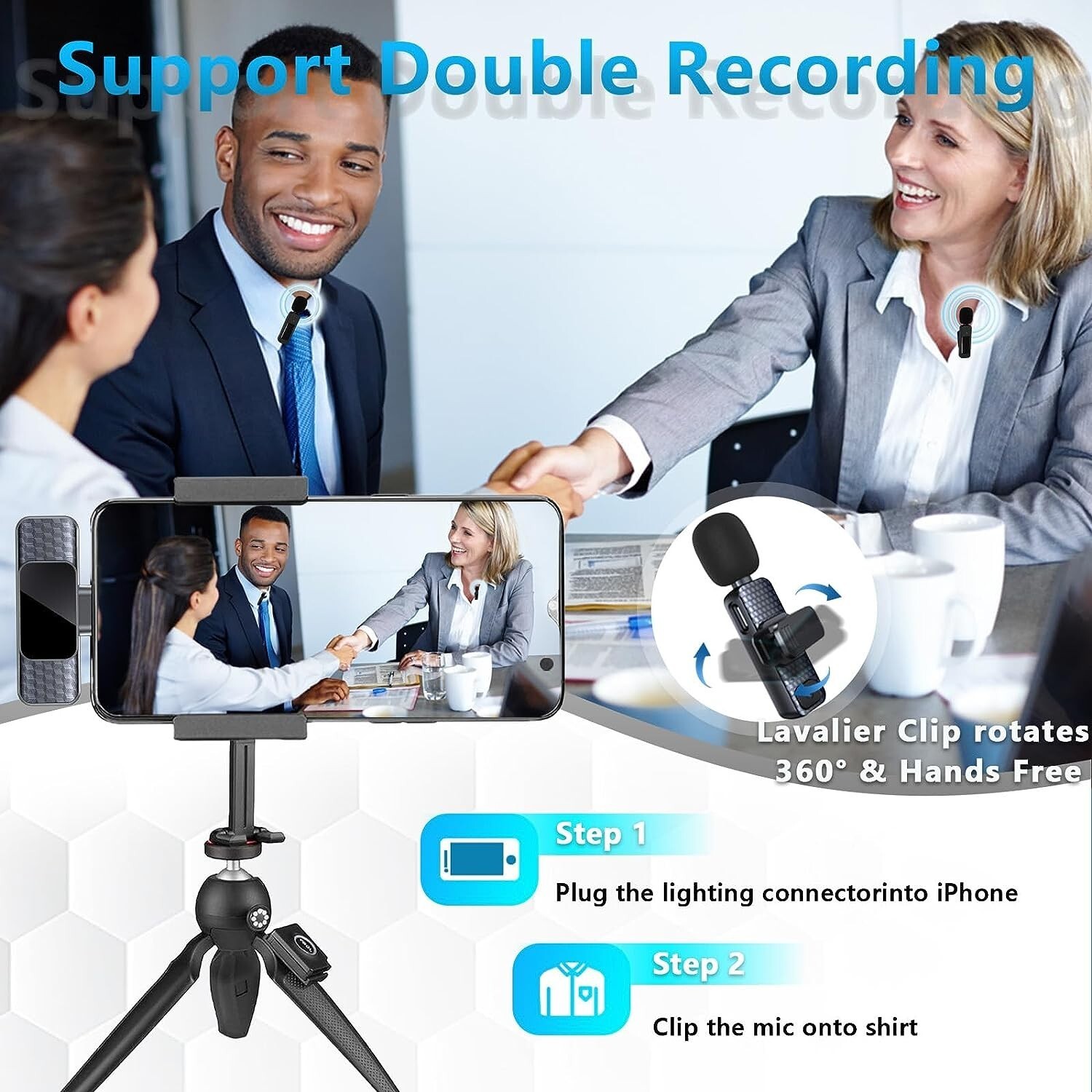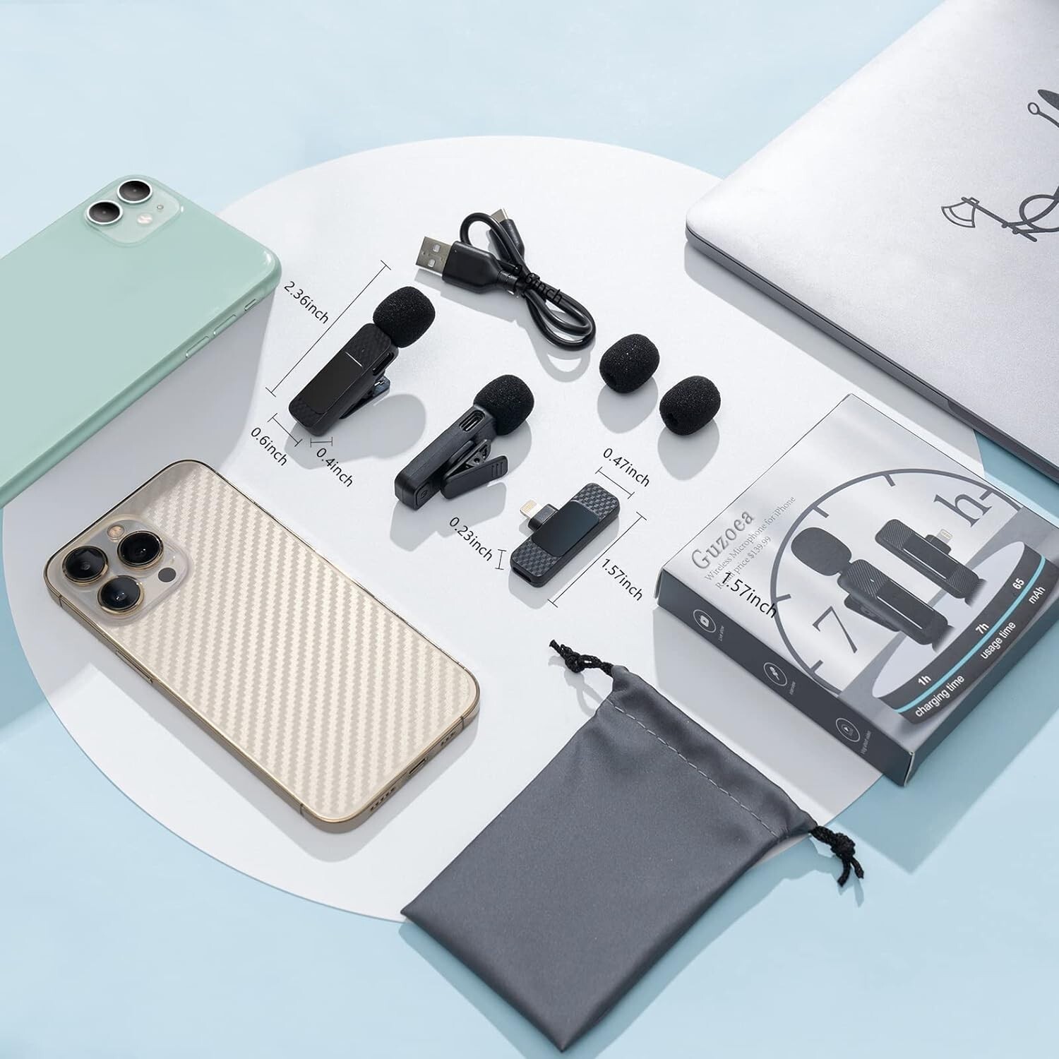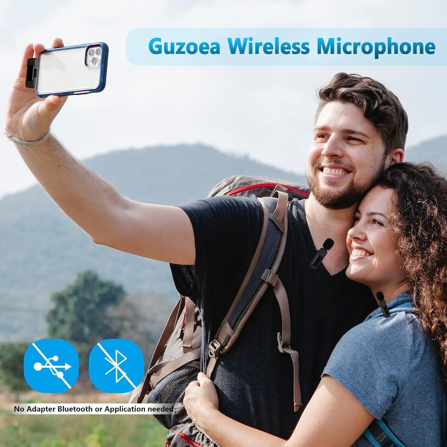 Guzoea 2 Pack Wireless Lavalier Lapel Microphone for iPhone iPad Black
