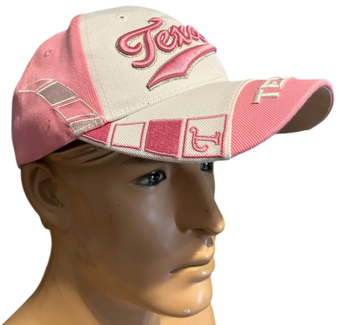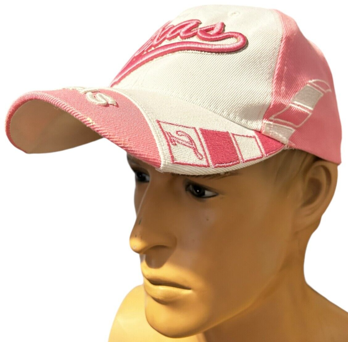 Pink and White embroidered Texas hook loop adjustable hat OSFA