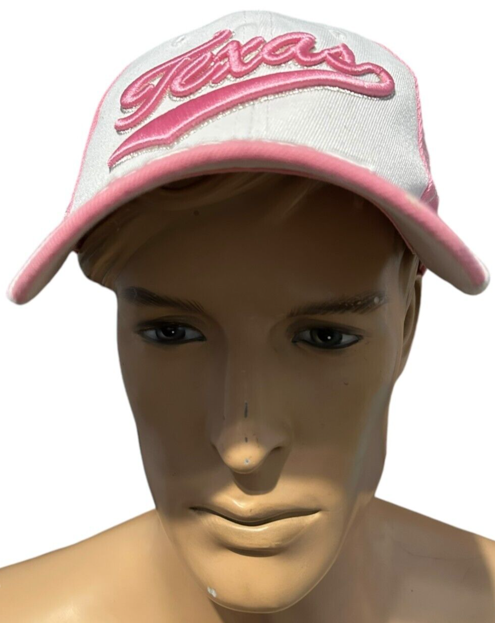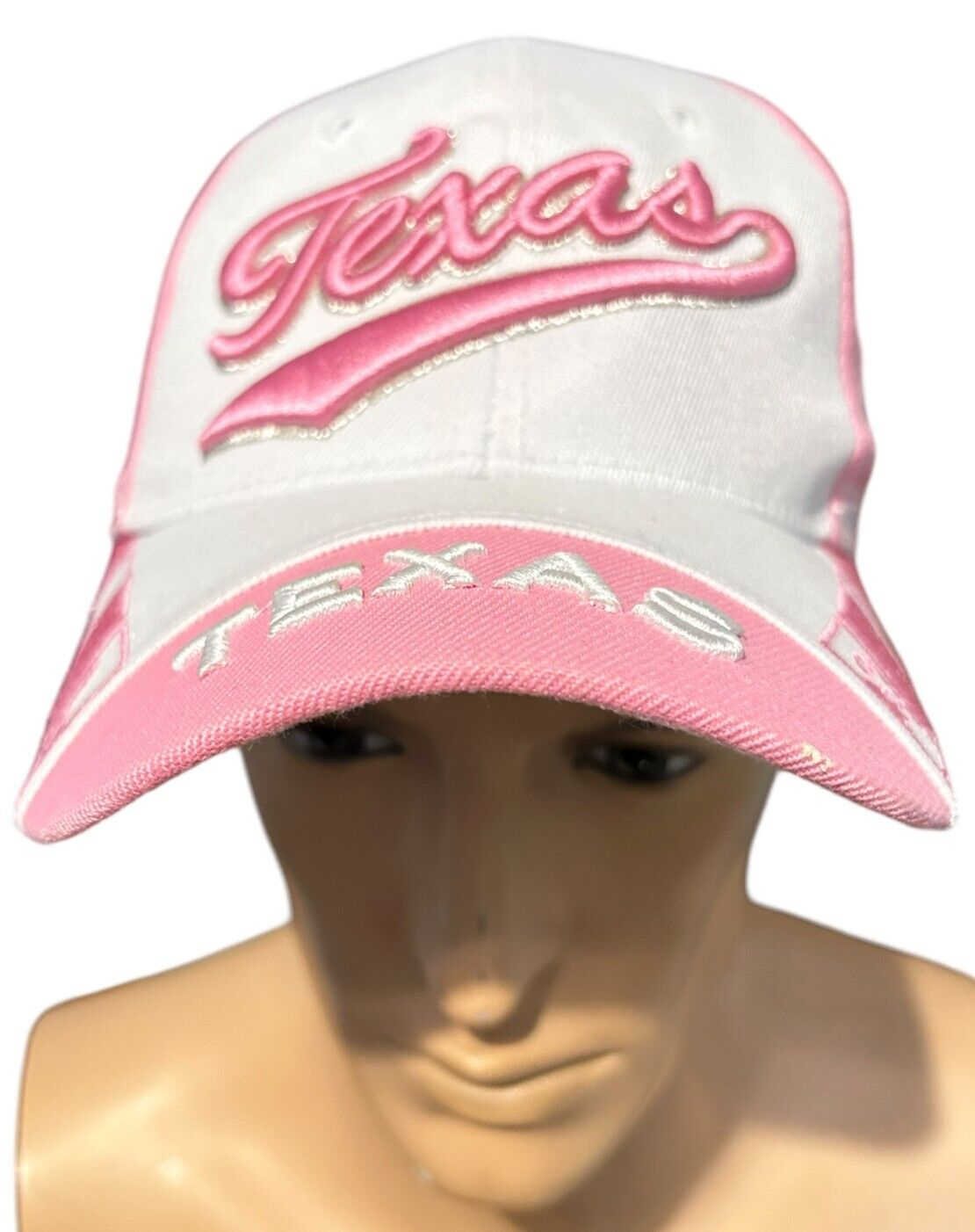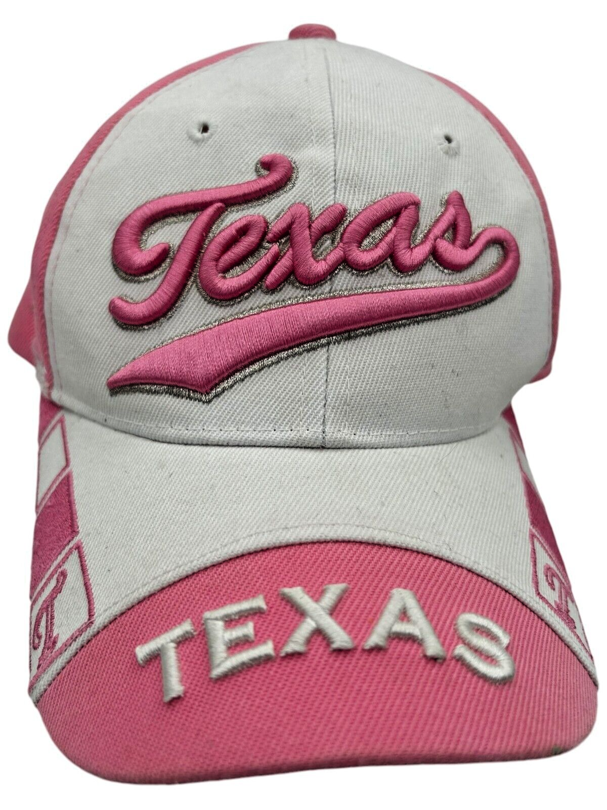 Pink and White embroidered Texas hook & loop adjustable hat OSFA