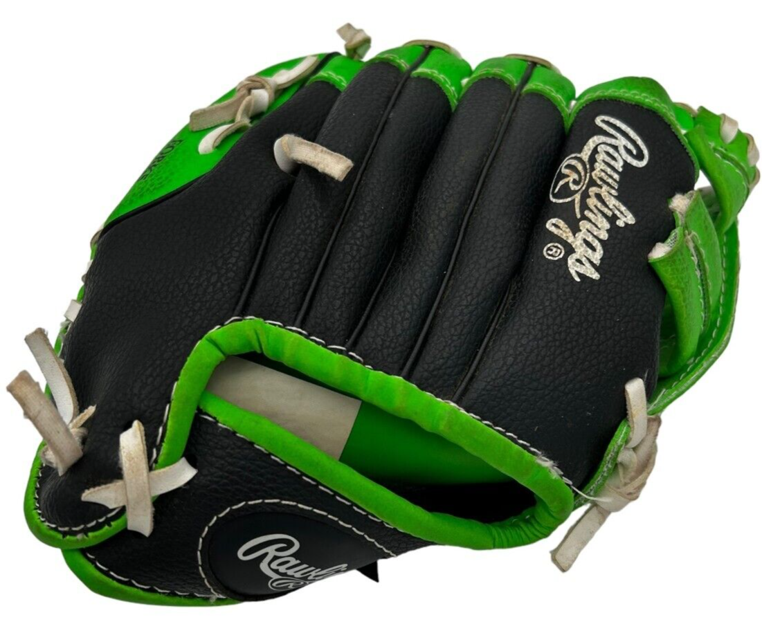 Black Green Rawlings 9” Baseball Softball Glove PL90LG Girls Basket Web RHT