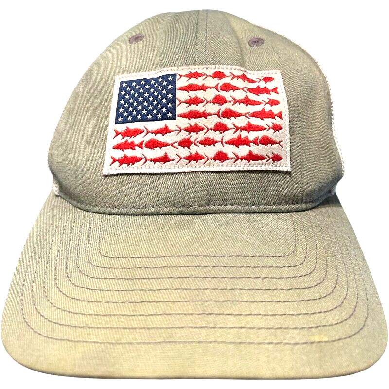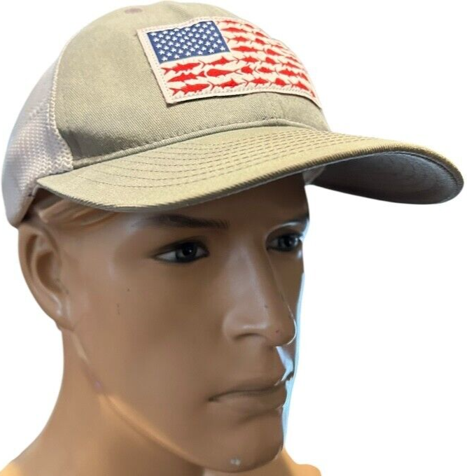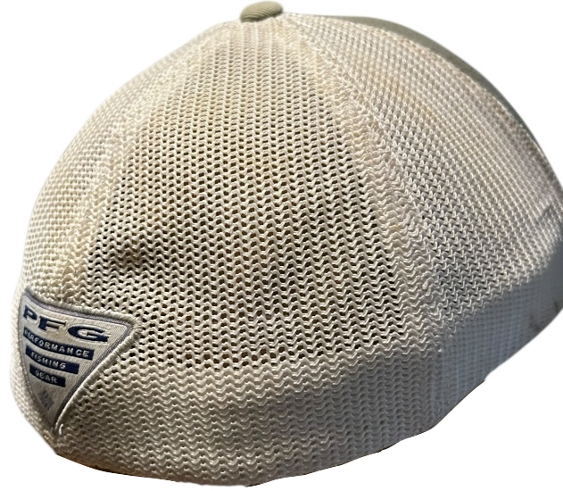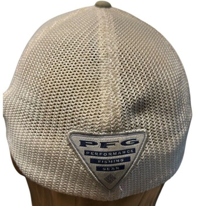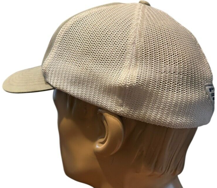 Columbia PFG Performance Fishing Gear Beige Mesh Back Trucker Hat Fitted S/M