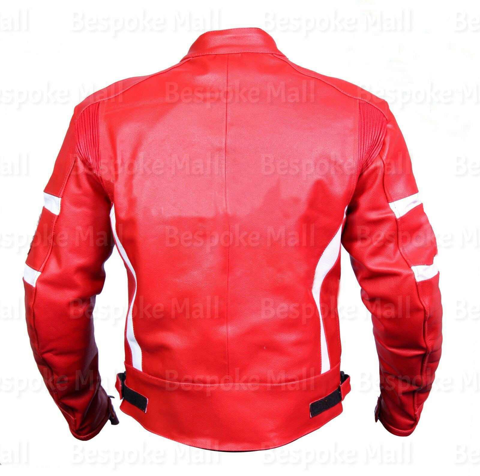 New Men's Red White Stripes Motorcycle Cowhide Leather Jacket Safety Pads-962
