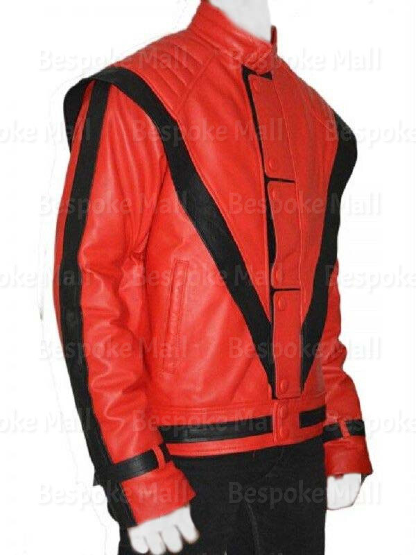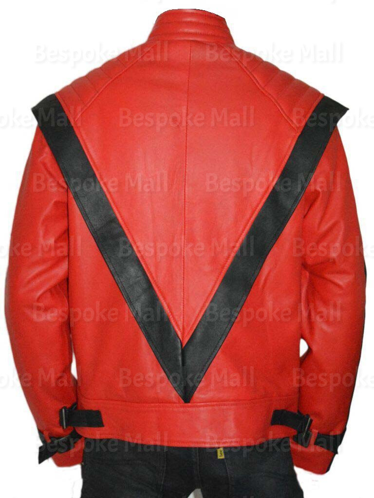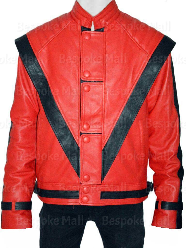 Micheal Jackson Thriller Red Black Striped Cowhide Leather Jacket All Size-42
