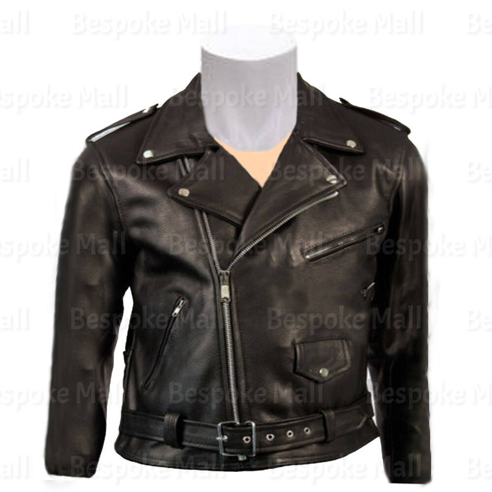 New Handmade Men's Classic Brando Motorcycle Motorbike Biker Leather Jacket-499