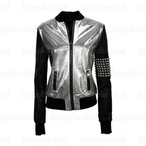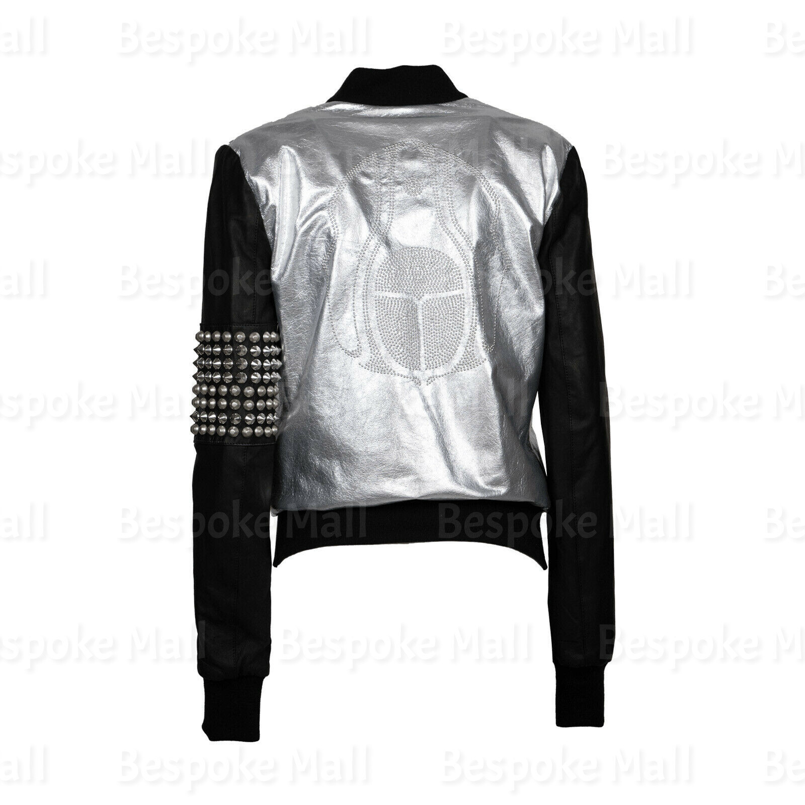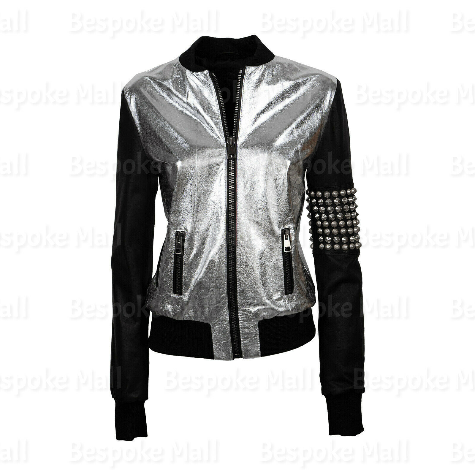New Woman's Handmade Silver Studded Punk Unique Cowhide Biker Leather Jacket-709