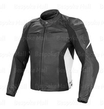 New Men's Black White Biker Motorbike Cowhide Leather Jacket Safety Pads-403