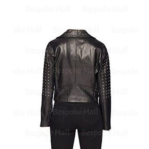 Handmade New Women's Black Color Leather Studded Brando Motorcycle Jacket-199