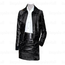 New Woman's Black Silver Tonal Studded Unique Cowhide Biker Leather Jacket-391