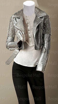 New Woman Silver Brando Silver Studded Punk Snake Cowhide Leather Jacket-49