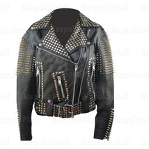 New Women's Brando Style Silver Spiked Studded Punk Cowhide Leather Jacket-146