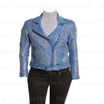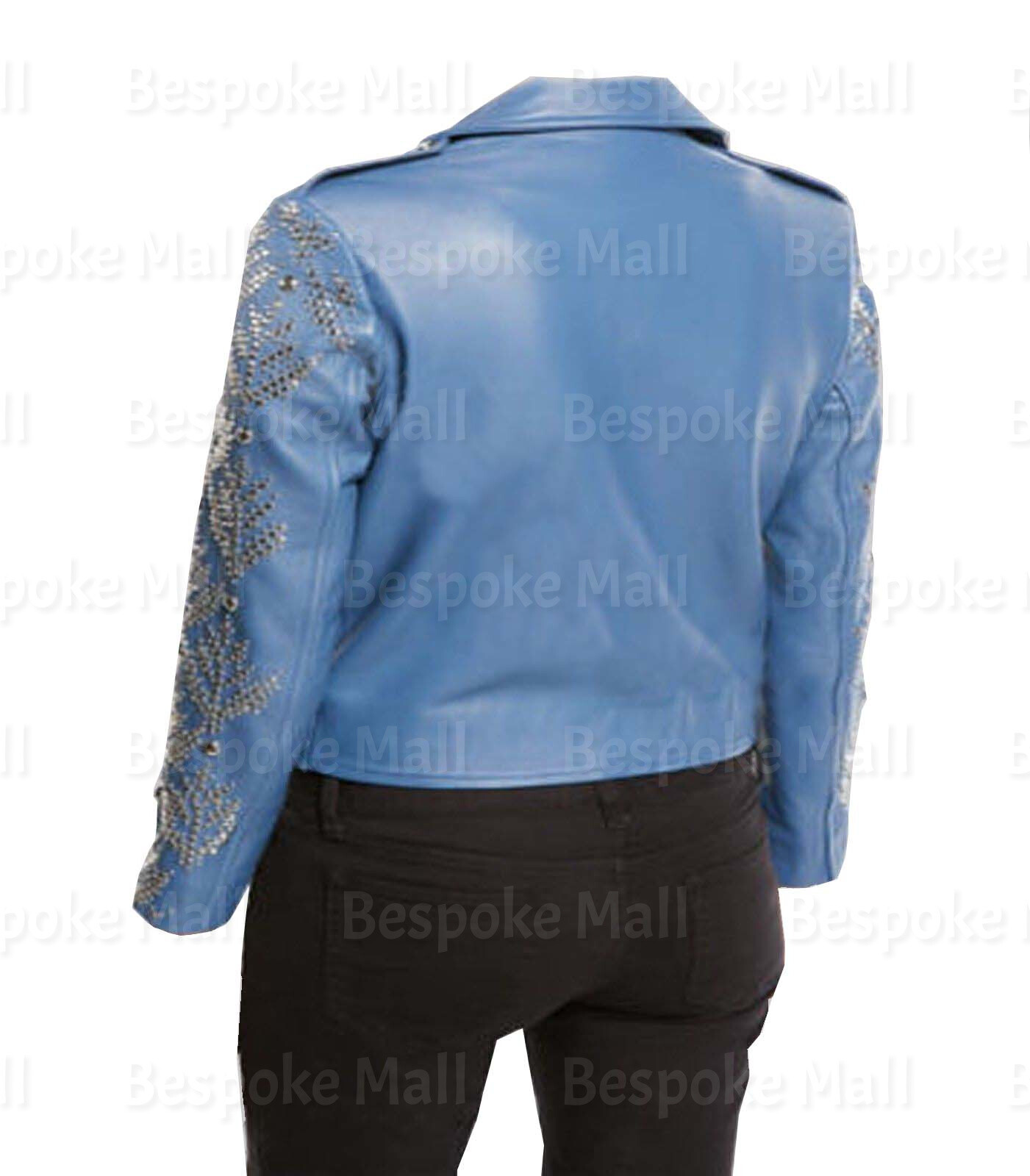 New Handmade Woman Full Silver Studded Designed Punk Biker Leather Jacket-30