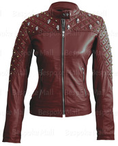 New Women's Studded Zipper Stylish Dark Brown Genuine Cowhide Leather Jacket-927