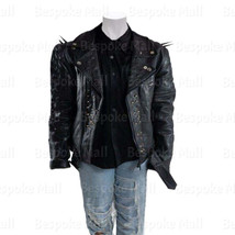 New Women's Black Brando Silver spike Studded Zipper Cowhide Leather Jacket-269