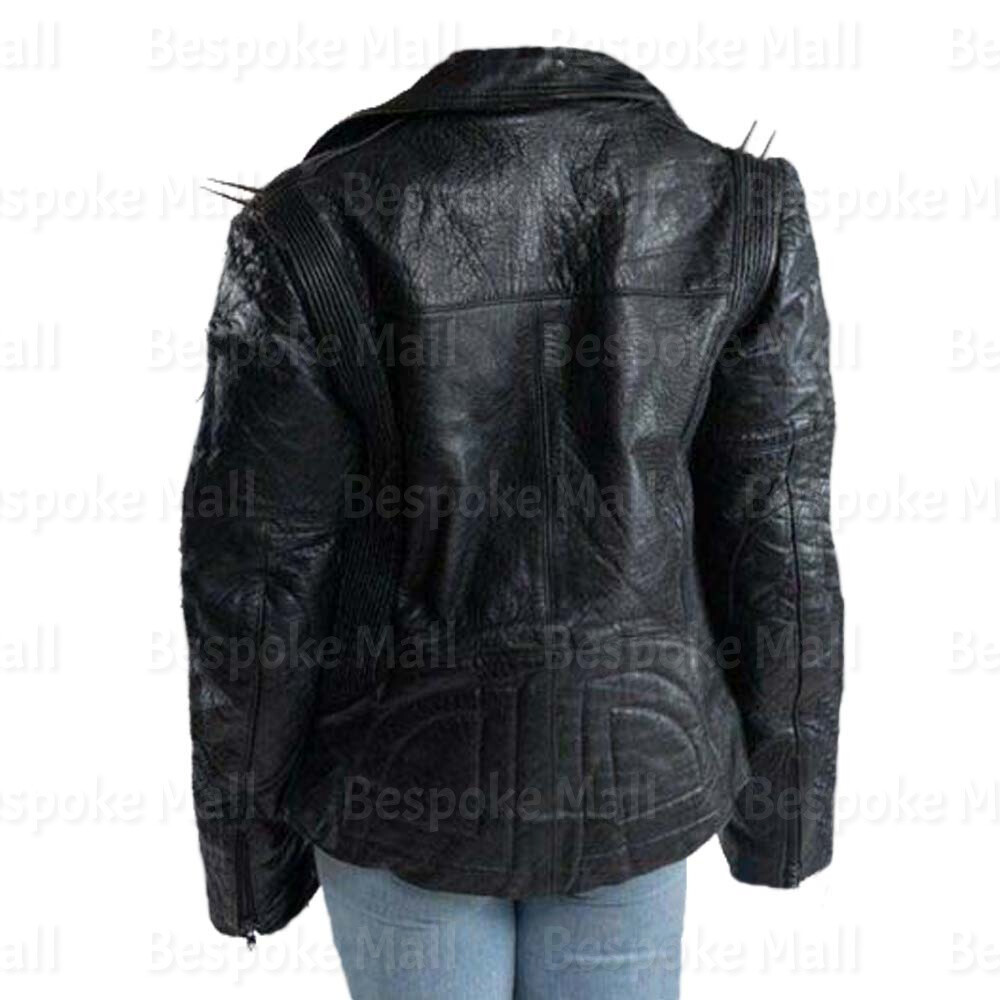 New Women's Black Brando Silver spike Studded Zipper Cowhide Leather Jacket-269