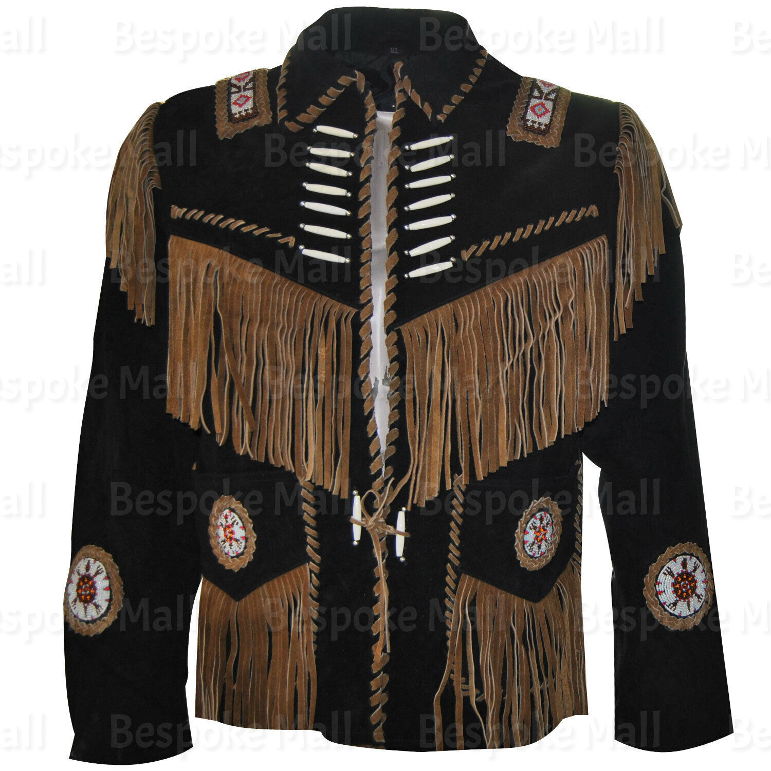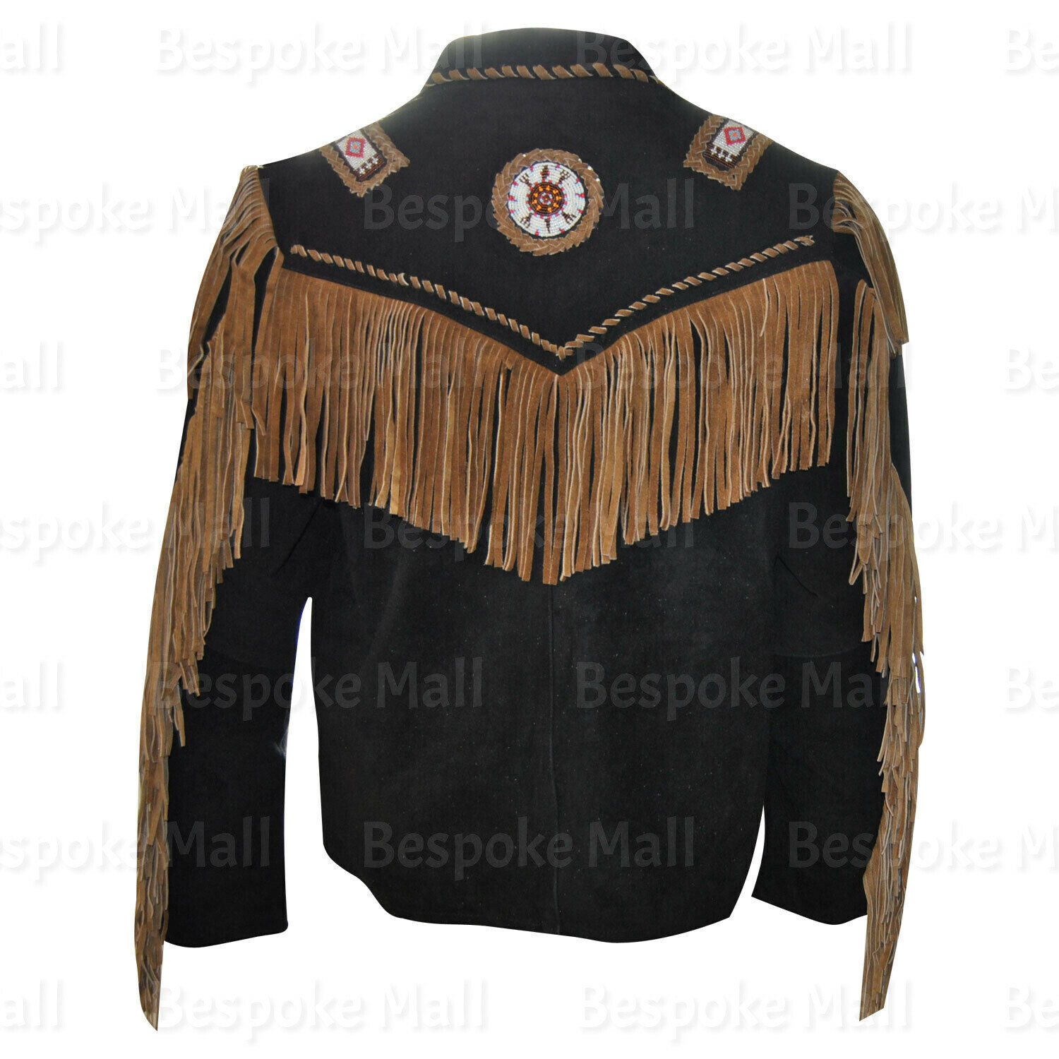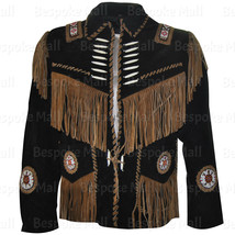 New Men's American Western Handmade Brown Suede Leather Jacket Fringes Beads-527