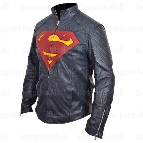 New Man of Steel Smallville Black Cowhide Leather Biker Motorbike Jacket-484