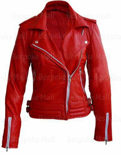New Woman Handmade Full Red Brando Style Biker Flash Cowhide Leather Jacket-69