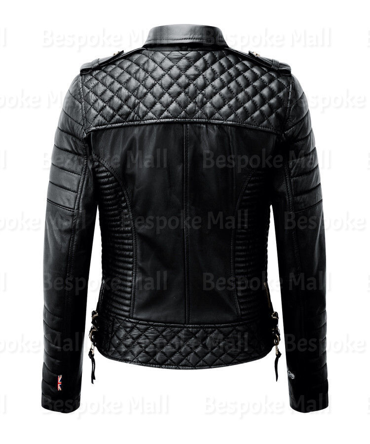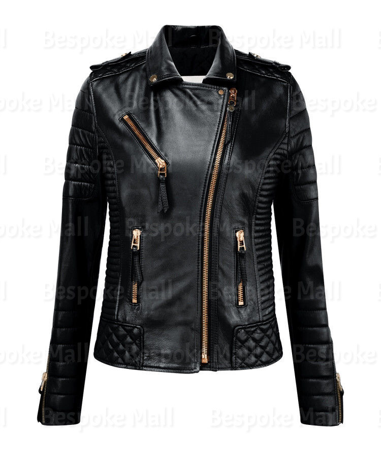 New Handmade Woman's Black Quilted Zippered Genuine Cowhide Leather Jacket-457