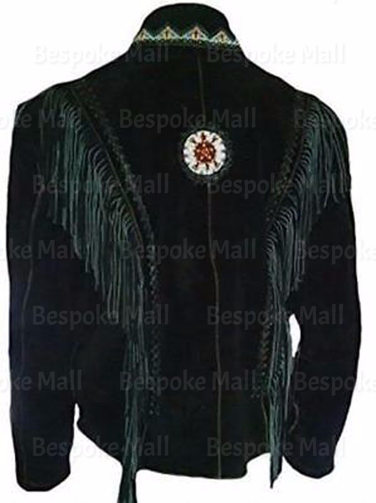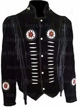 New Man's Western Style Real Suede Leather Jacket, Fringes Beads & Bones-276