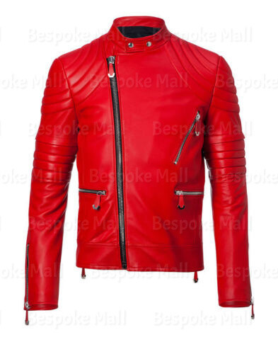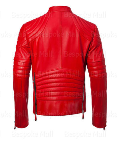 New Men's Handmade Red Quilted Zippered Genuine Cowhide Leather Coat Jacket-186