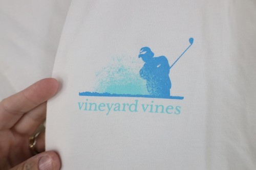 Vineyard Vines Mens Large Distressed Spell Out Golf Golfing T-Shirt White
