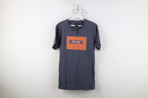 Deadstock G Star Raw Mens Size XS Spell Out Box Logo T-Shirt Steel Blue Cotton