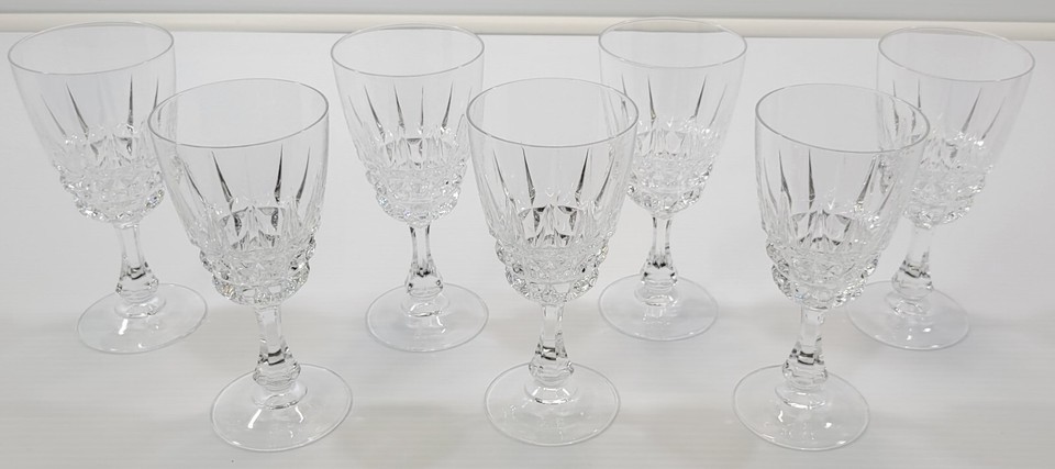 *N) Vintage Cristal d’Arques Pedestal Wine Glasses - 6-3/4" Tall - Set of 7